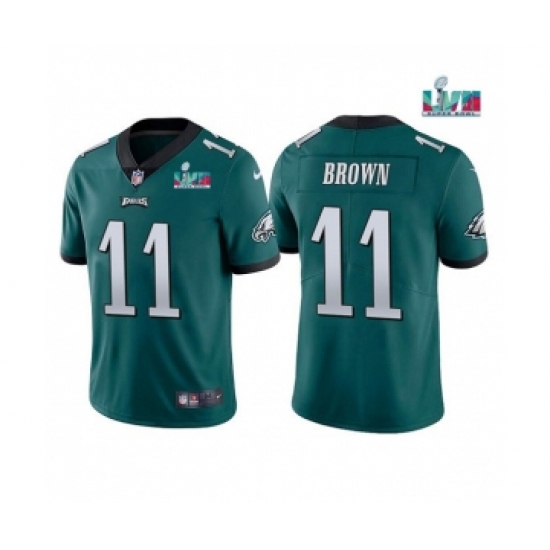 >Men's Philadelphia Eagles #11 A. J. Brown Green Super Bowl LVII Patch Vapor Untouchable Limited Stitched Jersey