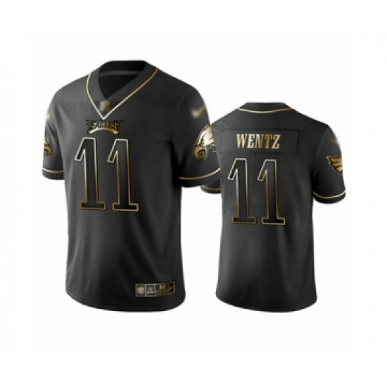 Men's Philadelphia Eagles #11 Carson Wentz Limited Black Golden Edition Football Jersey