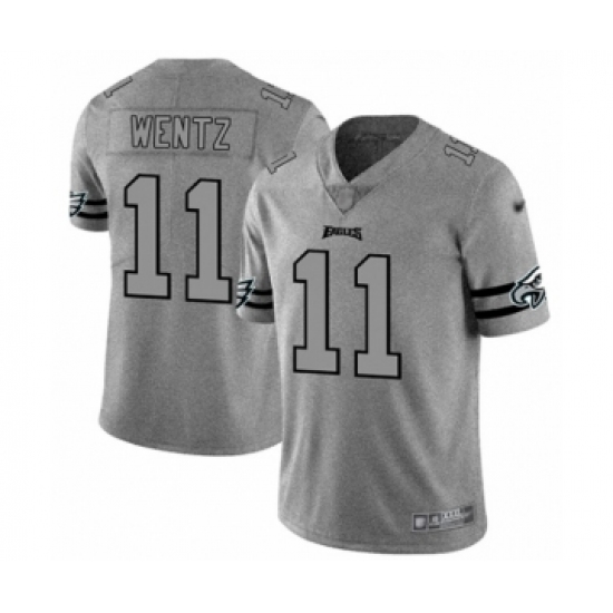 Men's Philadelphia Eagles #11 Carson Wentz Limited Gray Team Logo Gridiron Football Jersey
