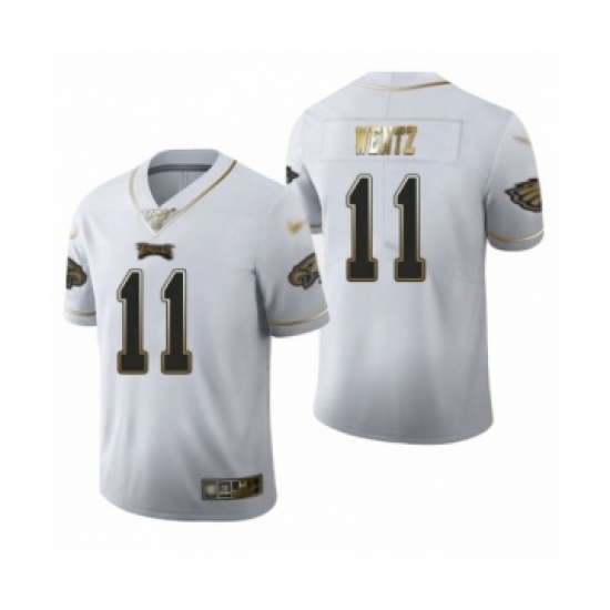 Men's Philadelphia Eagles #11 Carson Wentz Limited White Golden Edition Football Jersey