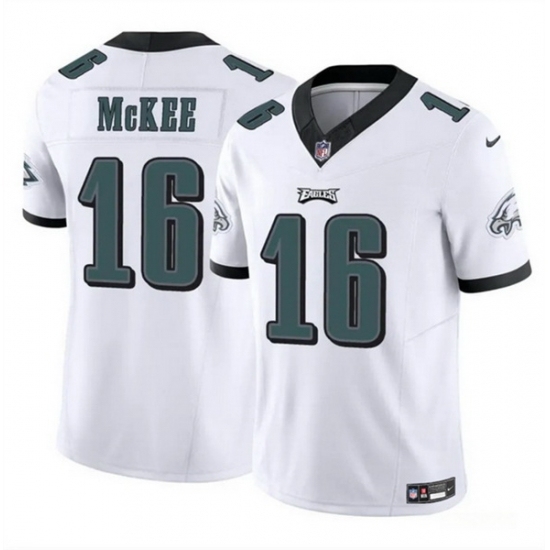 >Men's Philadelphia Eagles #16 Tanner McKee White 2024 F U S E Vapor Untouchable Limited Stitched Football Jersey