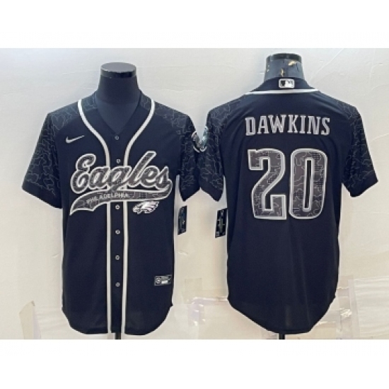 Men's Philadelphia Eagles #20 Brian Dawkins Black Reflective With Patch Cool Base Stitched Baseball Jersey