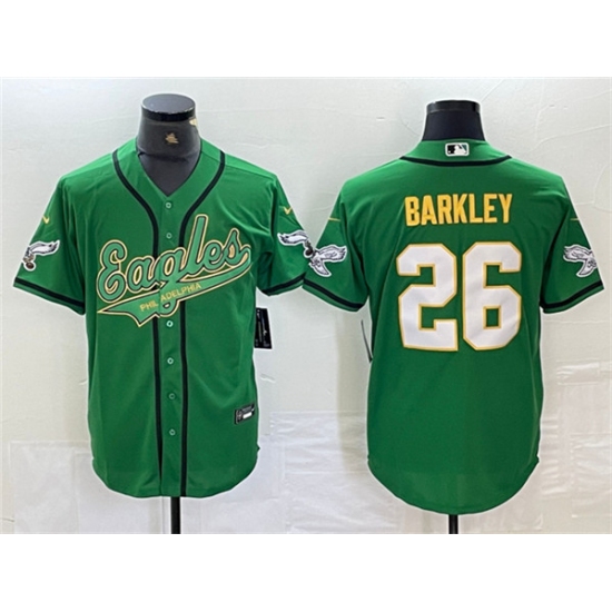 Men's Philadelphia Eagles #26 Saquon Barkley Green Gold Cool Base Baseball Stitched Jersey