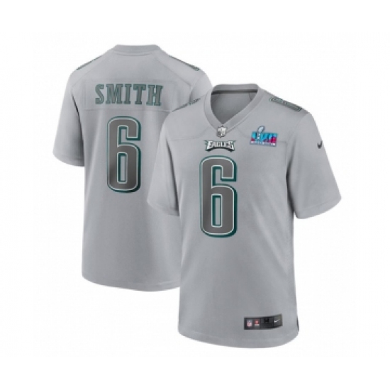 >Men's Philadelphia Eagles #6 DeVonta Smith Gray Super Bowl LVII Patch Atmosphere Fashion Stitched Game Jersey