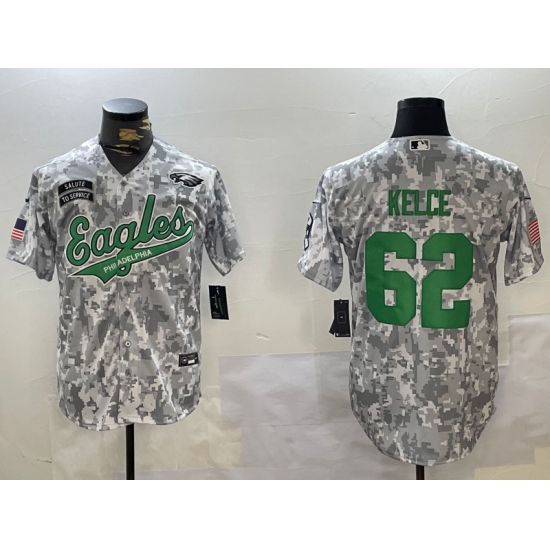 Men's Philadelphia Eagles #62 Jason Kelce Arctic Camo 2024 Salute to Service Stitched Baseball Jersey
