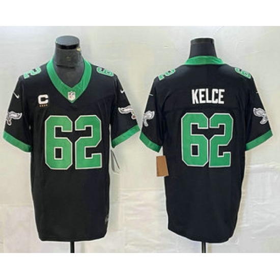>Men's Philadelphia Eagles #62 Jason Kelce Black C 2023 FUSE Vapor Limited Throwback Stitched Jersey