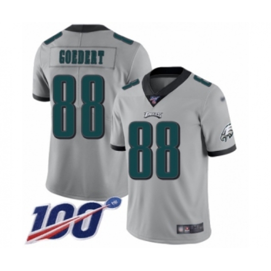 >Men's Philadelphia Eagles #88 Dallas Goedert Limited Silver Inverted Legend 100th Season Football Jersey