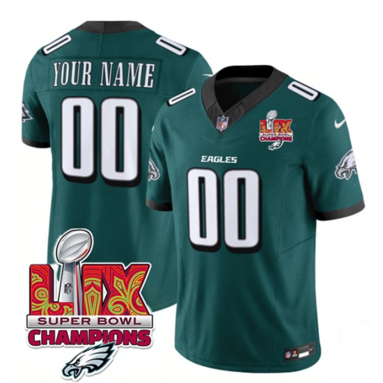 >Men's Philadelphia Eagles Active Player Custom Green 2025 Eagles Logo Super Bowl LIX Patch New F.U.S.E. Vapor Limited Football Stitched Jersey