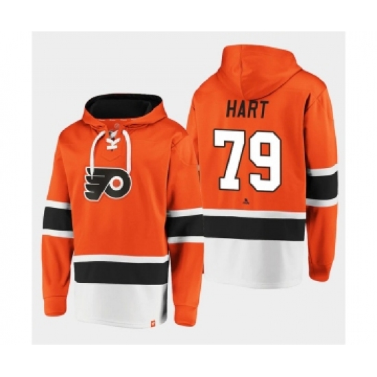 Men's Philadelphia Flyers #79 Carter Hart Orange Ageless Must-Have Lace-Up Pullover Hockey Hoodie