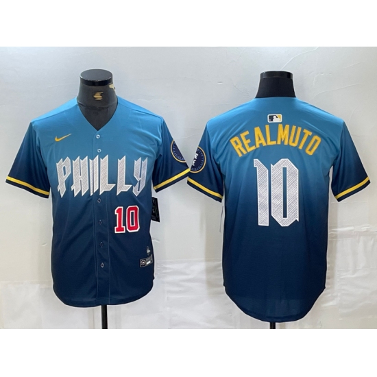 Men's Philadelphia Phillies #10 JT Realmuto Number Blue 2024 City Connect Limited Stitched Jerseys