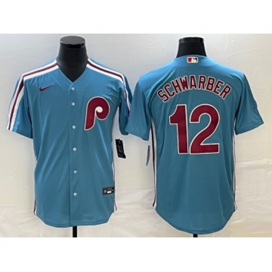 Men's Philadelphia Phillies #12 Kyle Schwarber Blue Cooperstown Throwback Cool Base Nike Jersey