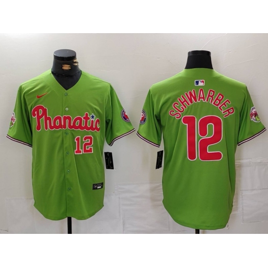 Men's Philadelphia Phillies #12 Kyle Schwarber White Green Cool Base Stitched Jersey