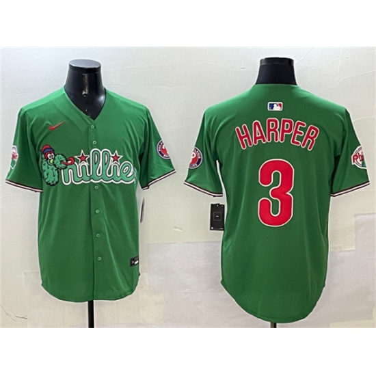 >Men's Philadelphia Phillies #3 Bryce Harper Green Phanatic Limited Stitched Jersey