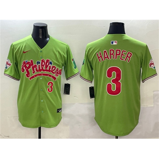 Men's Philadelphia Phillies #3 Bryce Harper Light Green Phanatic Limited Stitched Jersey