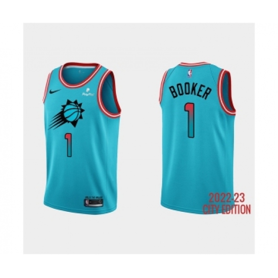 Men's Phoenix Suns #1 Devin Booker 2022-23 Blue City Edition Stitched Basketball Jersey