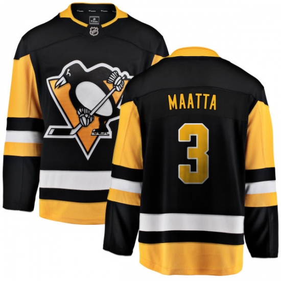 Men's Pittsburgh Penguins #3 Olli Maatta Fanatics Branded Black Home Breakaway NHL Jersey