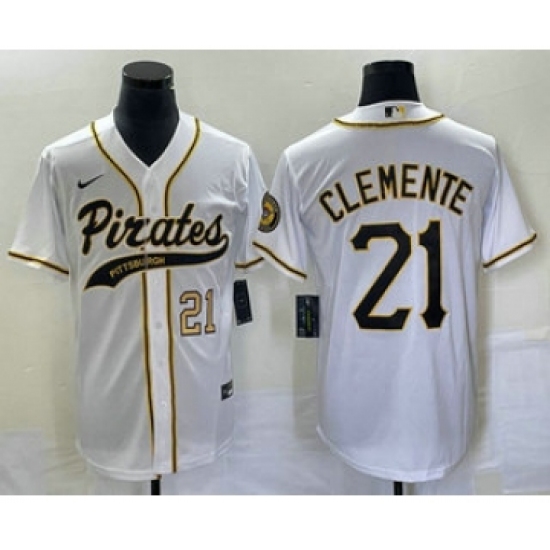 Men's Pittsburgh Pirates #21 Roberto Clemente Number White Cool Base Stitched Baseball Jersey
