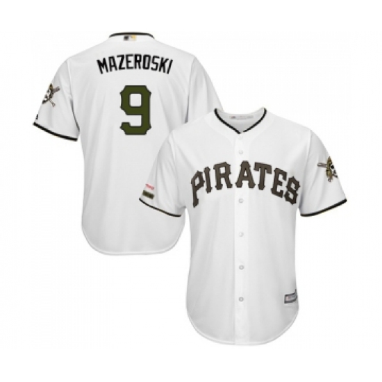 >Men's Pittsburgh Pirates #9 Bill Mazeroski Replica White Alternate Cool Base Baseball Jersey