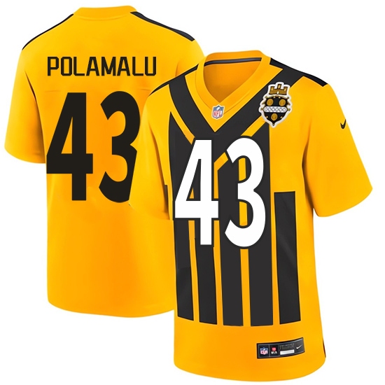 Men's Pittsburgh Steelers #43 Troy Polamalu Gold 1933 Throwback Alternate Football Stitched Game Jersey