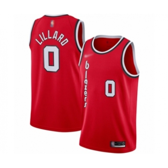 Men's Portland Trail Blazers #0 Damian Lillard Authentic Red Hardwood Classics Basketball Jersey