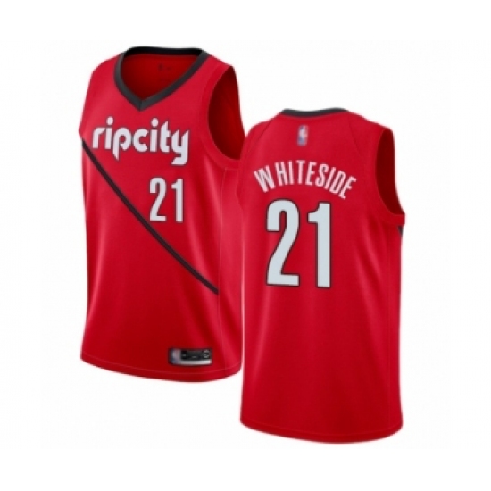 >Men's Portland Trail Blazers #21 Hassan Whiteside Red Swingman Jersey - Earned Edition
