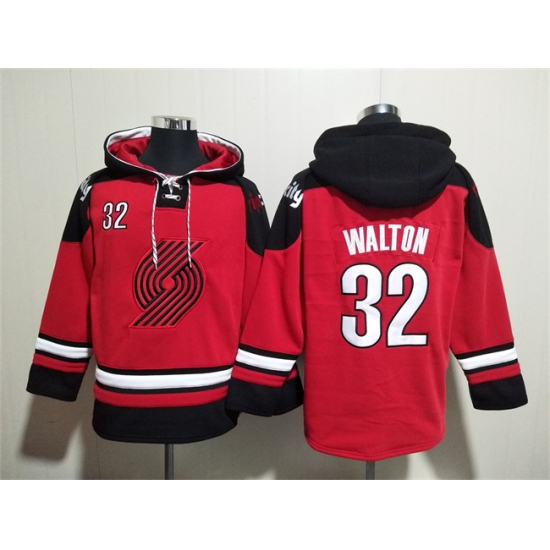 >Men's Portland Trail Blazers #32 Bill Walton Red Lace-Up Pullover Hoodie