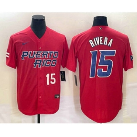 Men's Puerto Rico Baseball #15 Emmanuel Rivera Number 2023 Red World Classic Stitched Jersey