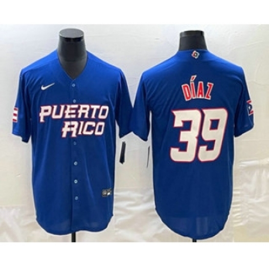 Men's Puerto Rico Baseball #39 Edwin Diaz 2023 Blue World Baseball Classic Stitched Jersey