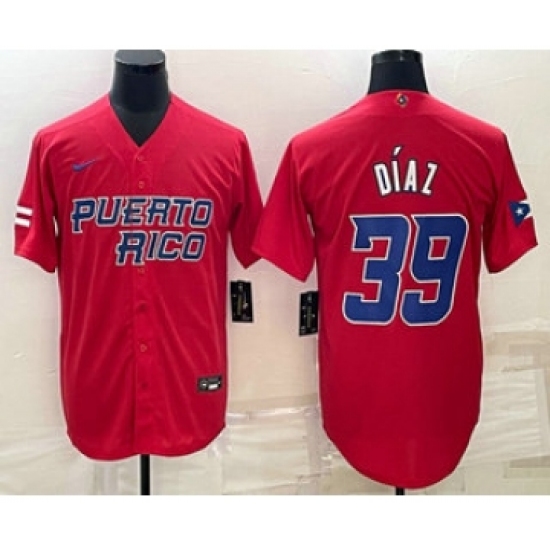 Men's Puerto Rico Baseball #39 Edwin Diaz 2023 Red World Baseball Classic Stitched Jersey