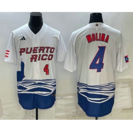 Men's Puerto Rico Baseball #4 Yadier Molina Number 2023 Blue World Baseball Classic Stitched Jersey