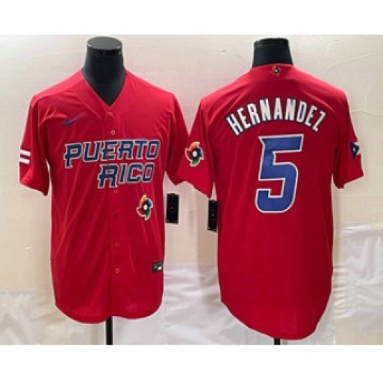 Men's Puerto Rico Baseball #5 Enrique Hernandez 2023 Red World Classic Stitched Jersey