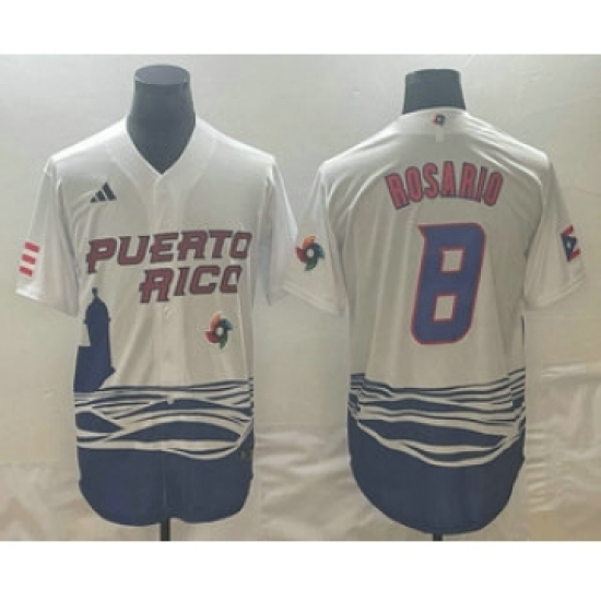 Men's Puerto Rico Baseball #8 Eddie Rosario 2023 White World Classic Stitched Jerseys