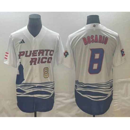 >Mens Puerto Rico Baseball #8 Eddie Rosario Number 2023 White World Classic Stitched Jersey