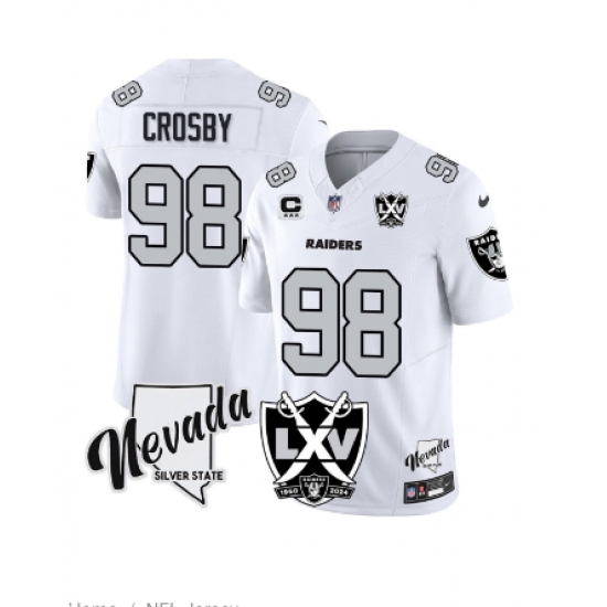 Men’s Raiders 2025 Vapor Limited Jersey 65th Anniversary All Stitched White 98 Maxx Crosby Jersey