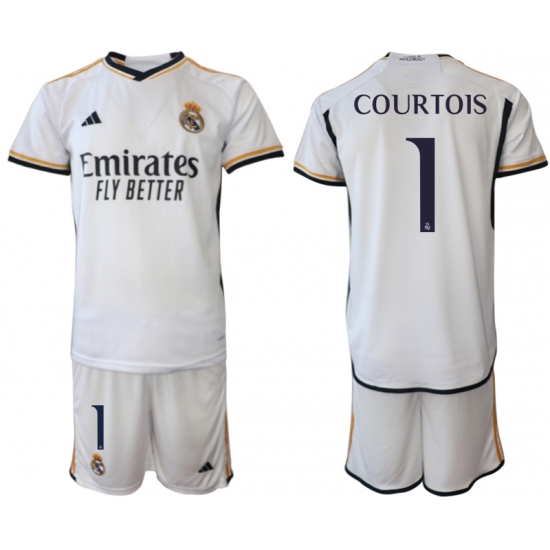 Men's Real Madrid #1 Courtois 2023-24 White Home Soccer Jersey