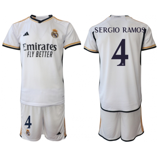 >Men's Real Madrid #4 Sergio Ramos 2023-24 White Home Soccer Jersey
