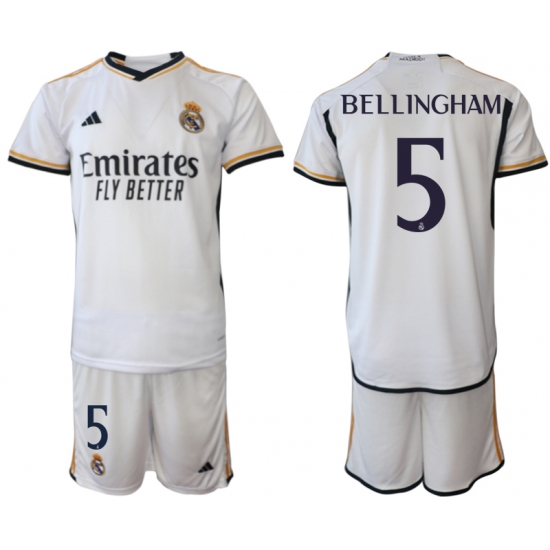 >Men's Real Madrid #5 Bellingham 2023-24 White Home Soccer Jersey