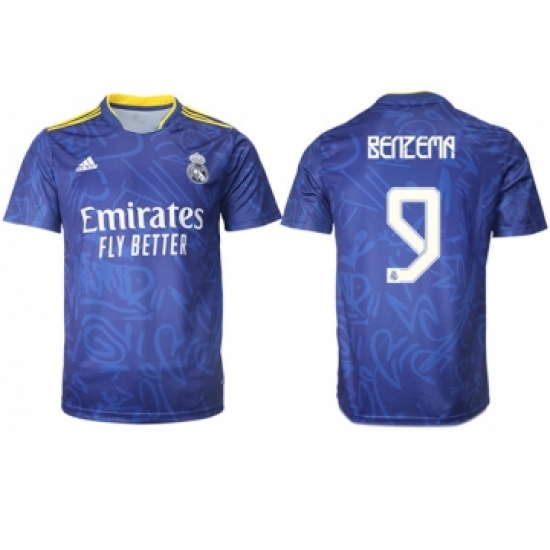 Men's Real Madrid #9 Karim Benzema 2021-22 Blue Away Soccer Jersey
