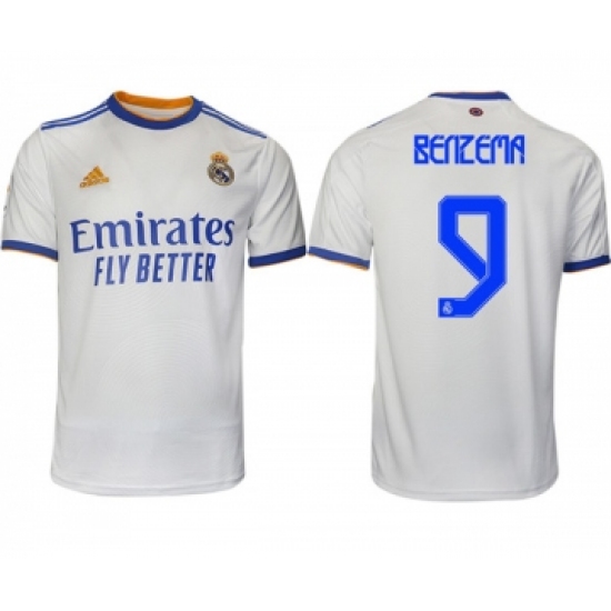 Men's Real Madrid #9 Karim Benzema 2021-22 White Home Soccer Jersey
