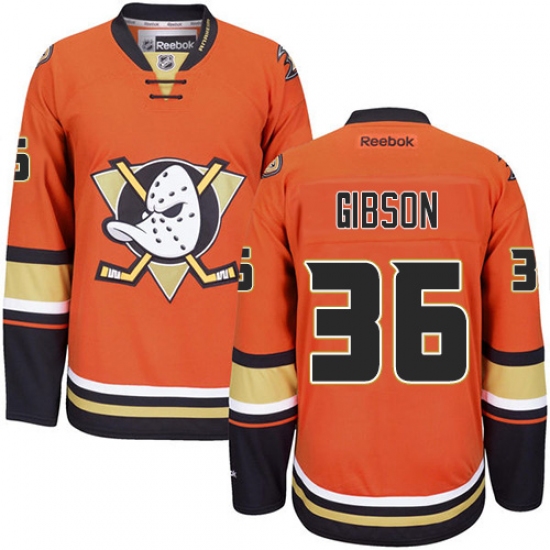 Men's Reebok Anaheim Ducks #36 John Gibson Authentic Orange Third NHL Jersey