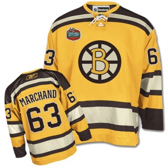 Men's Reebok Boston Bruins #63 Brad Marchand Authentic Gold Winter Classic NHL Jersey