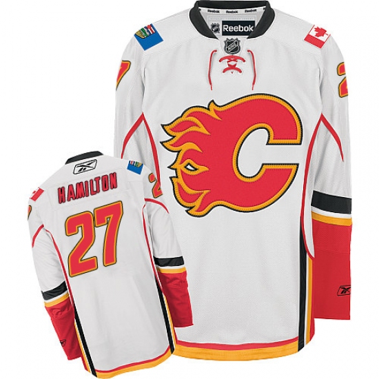 Home>NHL>Calgary Flames>Dougie Hamilton>Men's Reebok Calgary Flames #27 Dougie Hamilton Authentic White Away NHL Jersey