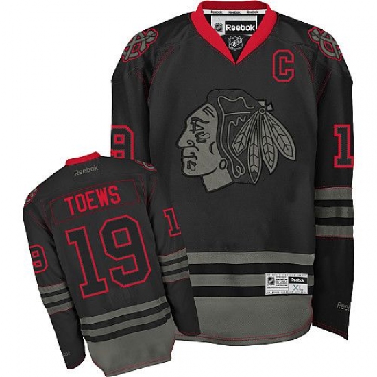 Men's Reebok Chicago Blackhawks #19 Jonathan Toews Authentic Black Ice NHL Jersey