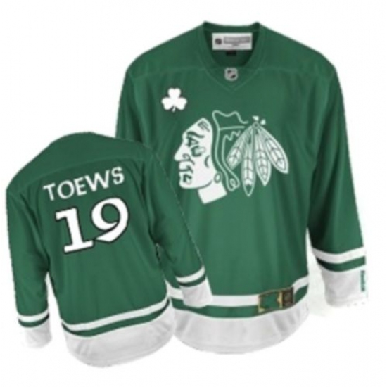 Men's Reebok Chicago Blackhawks #19 Jonathan Toews Authentic Green St Patty's Day NHL Jersey
