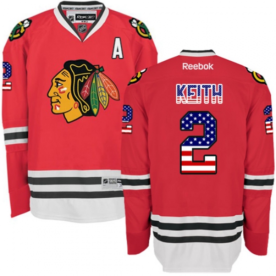 Men's Reebok Chicago Blackhawks #2 Duncan Keith Premier Red USA Flag Fashion NHL Jersey