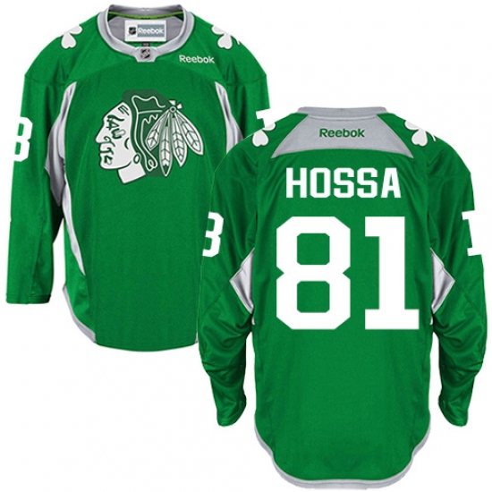 Men's Reebok Chicago Blackhawks #81 Marian Hossa Authentic Green Practice NHL Jersey