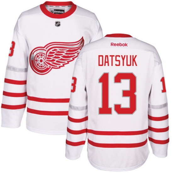 Men's Reebok Detroit Red Wings #13 Pavel Datsyuk Premier White 2017 Centennial Classic NHL Jersey