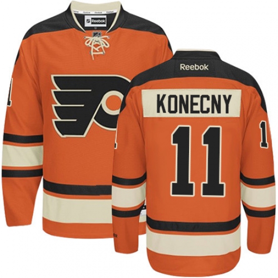 Men's Reebok Philadelphia Flyers #11 Travis Konecny Premier Orange New Third NHL Jersey