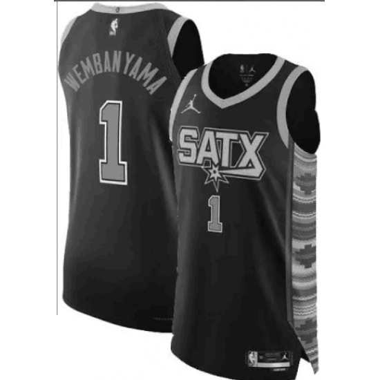 Men's San Antonio Spurs #1 Victor Wembanyama Black Statement Edition Stitched Basketball Jersey