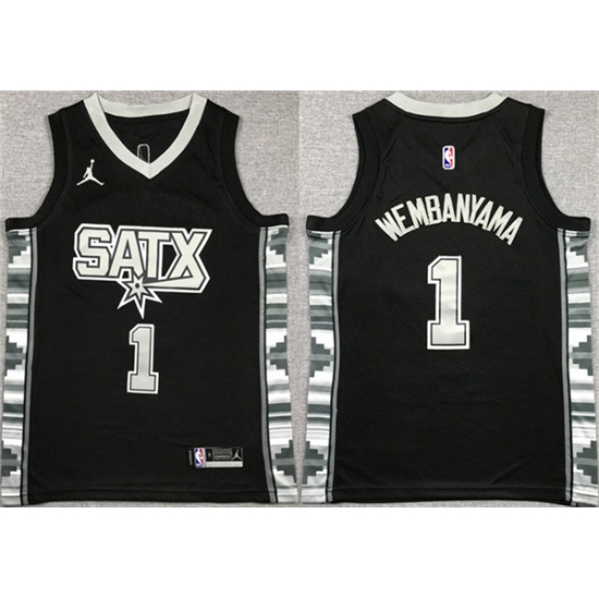 Men's San Antonio Spurs #1 Victor Wembanyama Black Statement Edition Stitched Basketball Jersey